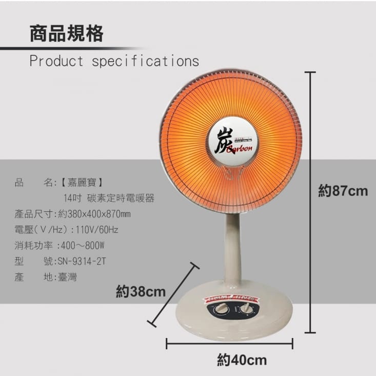 14"碳素定時電暖器 SN-9314-2T